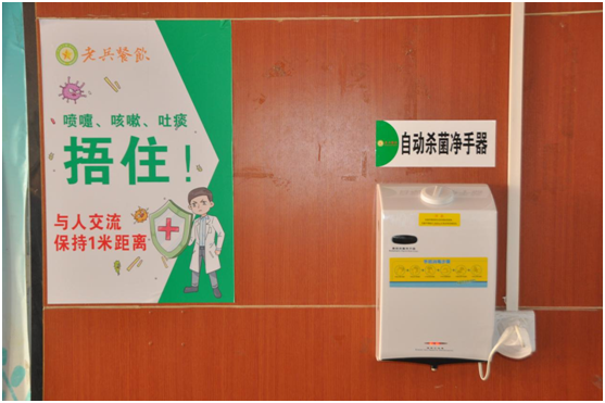 食堂还为你贴心配备了酒精自动杀菌净手器