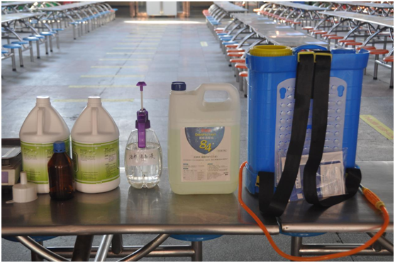 餐厅配备了各种防疫消毒物资,及时对餐厅进行消毒
