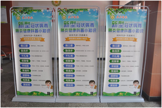 食堂门口摆放防疫宣传栏,宣传防疫常识