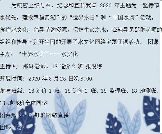 (一)水文化网络主题团课