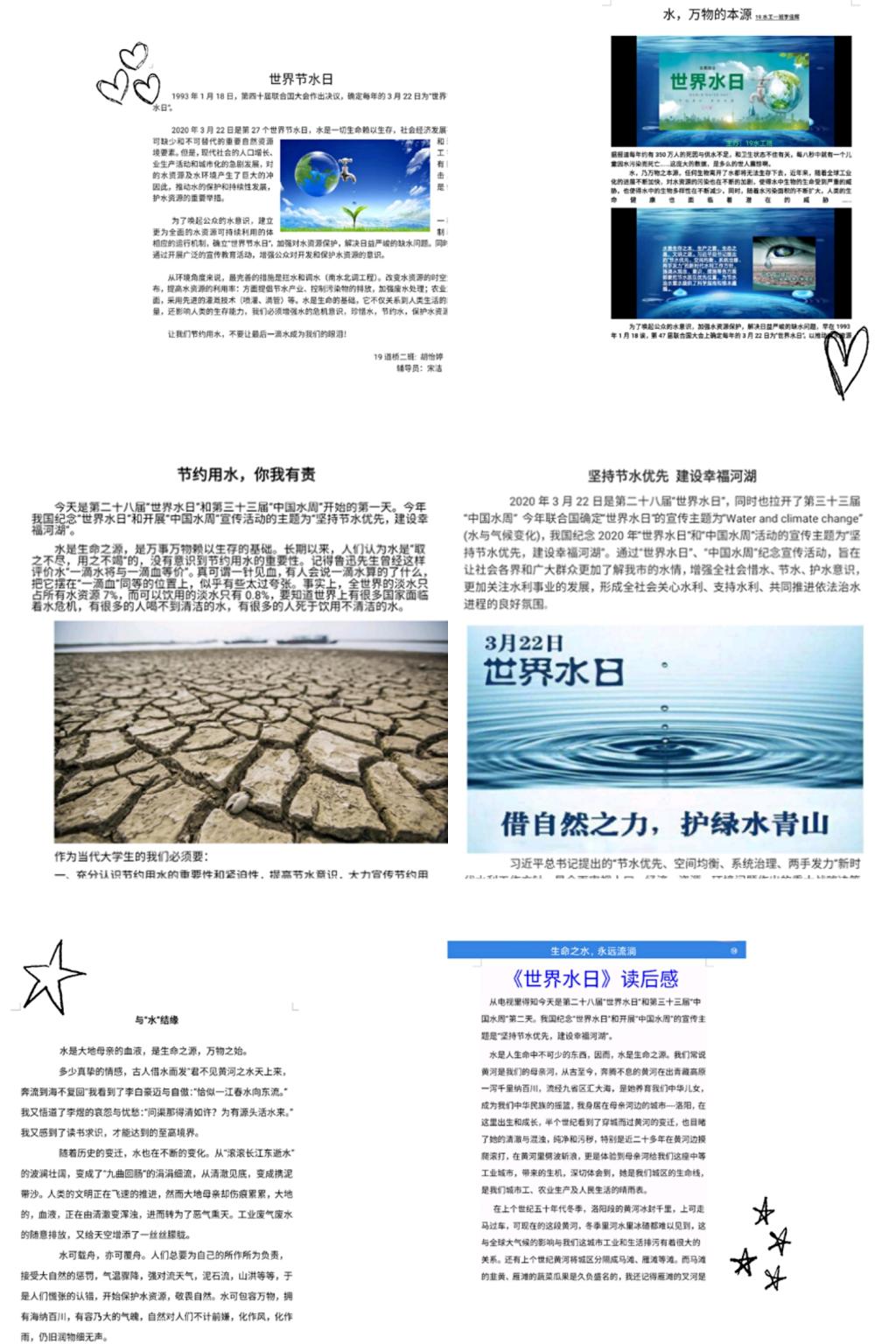 3月22日至28日是第三十三届“中国水周”。今年“世界水日”宣传主题为“水与气候变化”,“中国水周”宣传主题为“坚持节水优先,建设幸福河湖”。水利工程系开展线上主题班会、征文、手抄报、短视频制作系列活动,向全系师生传播珍惜水节约水的知识,号召广大师生在保护水资源节约水资源中尽一份义务,共同营造节水爱水惜水的良好氛围。