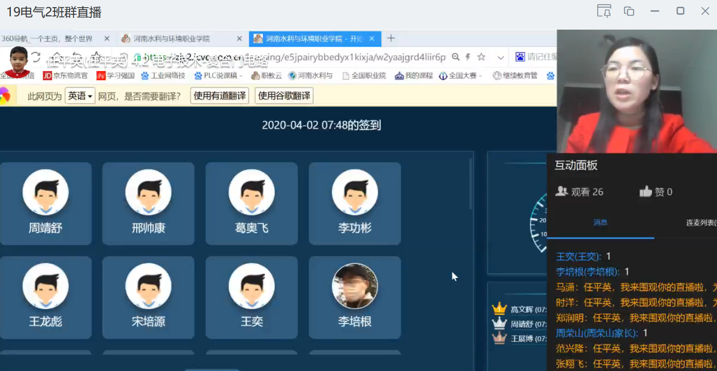 在授课过程中,使用职教云进行教学。通过职教云签到,掌握学生的出勤情况;通过职教云讨论功能跟学生互动,学生通过职教云积极回答问题。