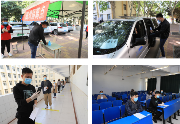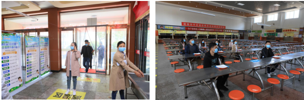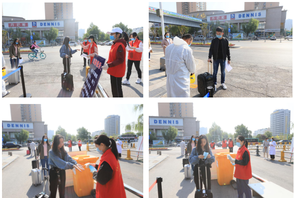 1.返校学生间隔1.5米,有序排队接受身份识别、体温监测,行李消毒,手部消毒更换口罩。
