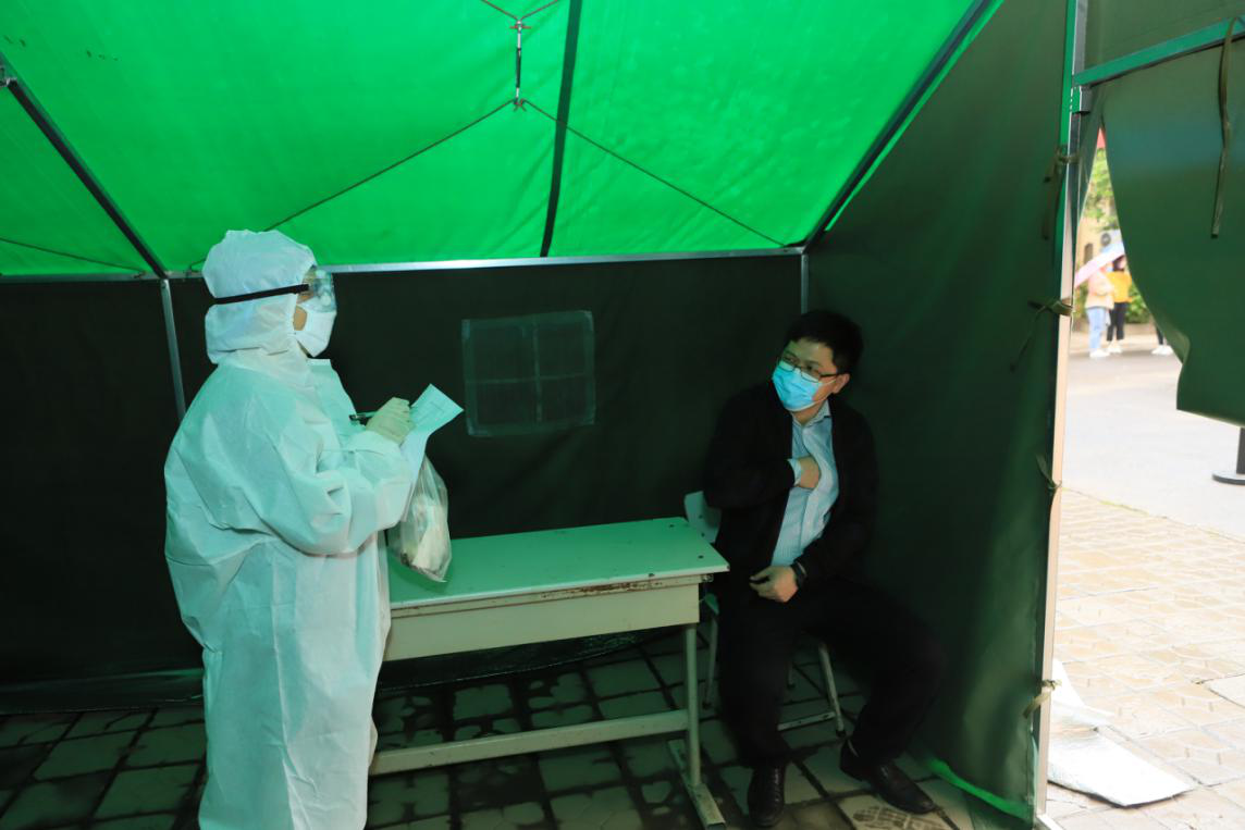 2.刘某在医务人员的指引下进入教学区临时隔离点,一名医务人员到达临时隔离点对刘某进行体温复检,另一名医务人员对同教室其他人员进行体温测量;