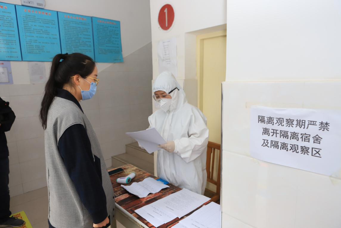 2.李某在医务人员指引下进入宿舍区临时隔离点,一名医务人员对李某进行体温复检,另一名医务人员对同宿舍其他人员进行体温测量;