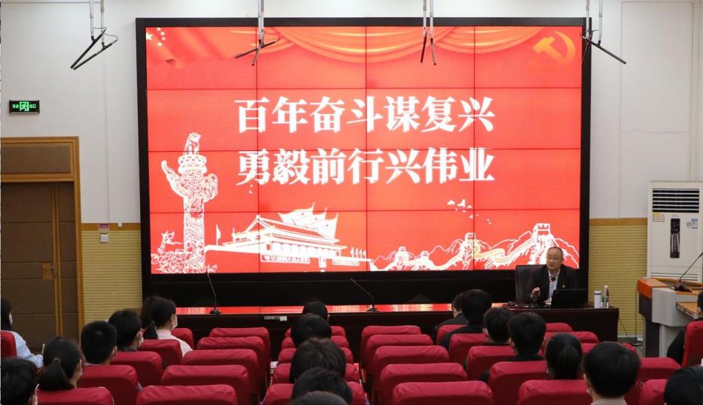 王立正以“百年奋斗谋复兴,勇毅前行兴伟业”为题,从“党载入史册的伟大飞跃”、“新时代历史性成就和历史性变革”、“伟大光荣的历史贡献”、“开创未来的行动指南”四个方面入手,带领师生一同回顾了党在四个历史时期团结带领人民创造的“四个伟大成就”,阐述了中国共产党人的精神谱系,并系统解读了党百年奋斗的宝贵历史经验。