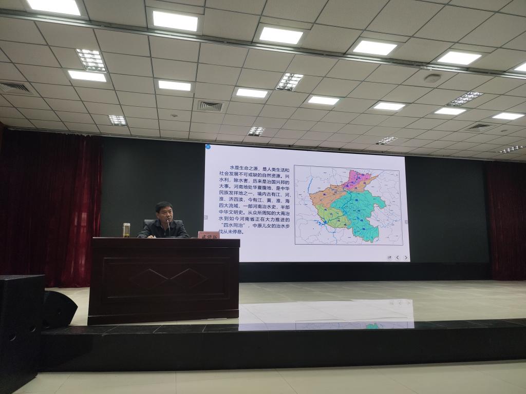 武建新以《深入贯彻习近平治水兴水重要论述推进河南水利高质量发展》为题,围绕“河南省基本水情和治水历程”、“河南水利系统深入学习贯彻落实习近平总书记治水兴水重要论述”、“弘扬新时代水利精神,推进河南水利高质量发展”和“深入贯彻落实党的十九届五中全会精神”等方面,进行了辅导报告。在报告中,他系统梳理了习近平总书记关于治水兴水的重要论述,精准阐述了河南省基本水情水貌,充分展示了河南水利在新时期取得的巨大成就,并就《中共中央关于制定国民经济和社会发展第十四个五年规划和二〇三五年远景目标的建议》中的涉水重点工作进行了详细讲解,提出了水利人未来面临的机遇和挑战。要求ylzzcom永利总站线路检测要全面准确学习贯彻习近平总书记治水兴水重要论述和党的十九届五中全会精神,善于抓住机遇,科学应对挑战,创新水利职业教育发展思路,为我省水利事业发展做出贡献。