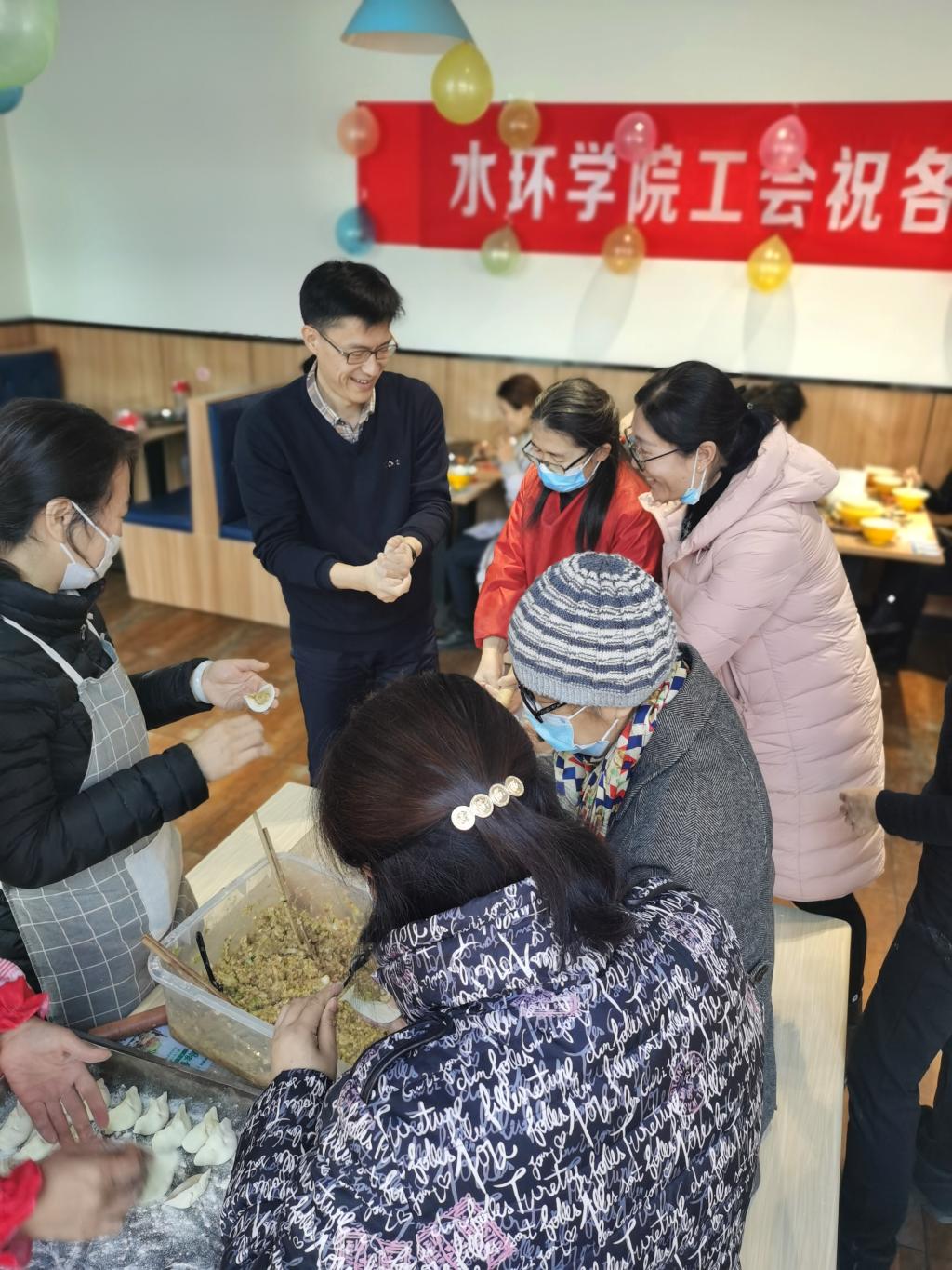 12月21日,校工会在花园路校区北餐厅组织进行教职工包饺子活动,150余名教职工参加活动。上午十点,大家齐聚食堂,开始和面、擀皮、包饺子,动作娴熟,有条不紊。参与职工纷纷使出看家本领,展示各种擀皮技巧、包出不同形状的饺子,活动现场欢声笑语,热闹非凡。学校领导也积极参与其中,把现场气氛推向了高潮。