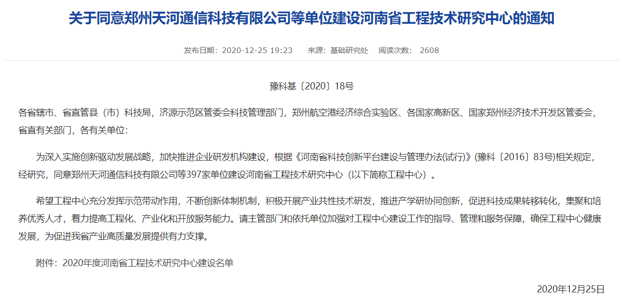 12月25日,省科技厅公布了2020年度新建河南省工程技术研究中心名单(豫科基〔2020〕18号),ylzzcom永利总站线路检测校长郑志宏教授主持申报的“河南省水生态智能装备工程技术研究中心”获批建设。