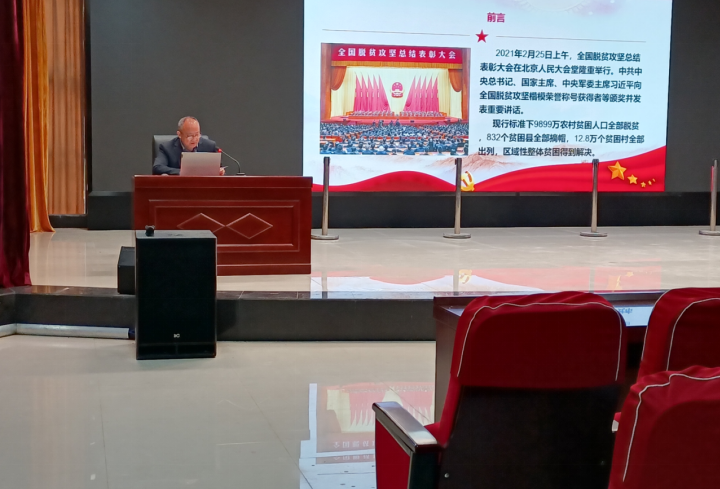 党委书记王立正围绕脱贫攻坚主题,在航空港校区德礼讲堂为水利工程系学生上了思政第一课。课上,他详细讲述了脱贫攻坚的提出背景、发展历程、取得成就、重要经验及其重大意义,要求与会学生要弘扬民族精神,积极向楷模学习,在为人民服务中茁壮成长,在艰苦奋斗中砥砺意志品质,在实践中增长工作本领,做敢于担当的时代好青年。