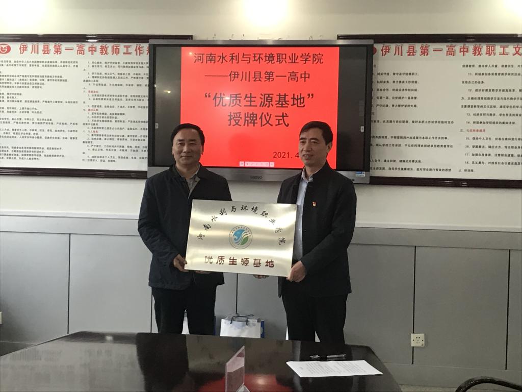 4月7日,副校长黄功学带领招生就业处、土木工程系和机电工程系主要负责人到伊川县滨河高中、伊川县第一高中及伊川县实验高中签订生源基地协议并授牌。