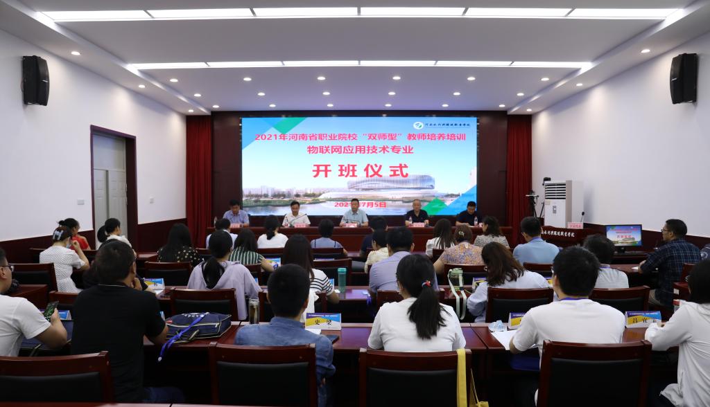 7月5日,由ylzzcom永利总站线路检测承办的河南省职业院校物联网应用技术专业“双师型”教师培养培训班顺利开班。省教育厅职业教育与成人教育处副处长张家成,北京新大陆时代教育科技有限公司华中区总监高鹏,校党委书记王立正,副校长黄功学、张凌杰,信息工程系负责人、教师代表及培训班全体学员参加开班仪式。仪式由张凌杰主持。