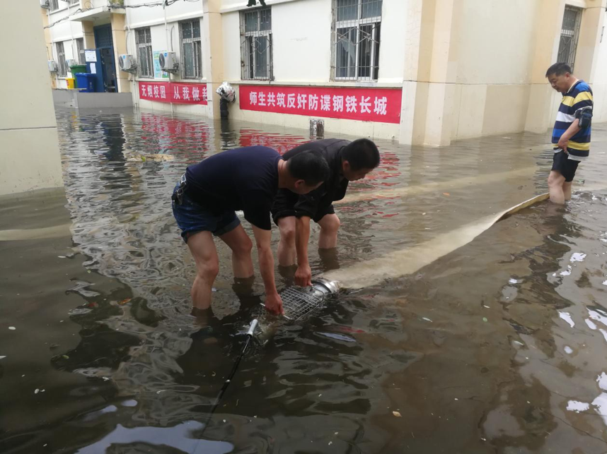 7月20日,在郑州市连续强降雨后,郑州市气象部门发布特大暴雨预警。闻讯后,工会主席魏义军带领总务后勤处处长宋金晓、副处长王晓丽等后勤部门工作人员进行隐患排查,紧急对学生宿舍楼等地下室用沙袋进行了封堵。但雨势过大,校园排水缓慢,积水成河,各地下室、办公楼、实训楼等进水严重。面临排水慢的问题,校党委书记王立正第一时间协调处理排水问题,省防汛抗旱物资储备中心知悉后,紧急援派排水抢险车支援ylzzcom永利总站线路检测,三台抽水泵不间断连续排水除涝。在这个过程中,总务后勤处木工张太玉,电工朱水强、张杰、李沛,水工聂四清,泥工张连志、鲁俊合,工作人员宋洪涛、郝坤宇、张国强,党政办李豫峰,退休职工徐建伟等同志自20日-23日,连续几昼夜坚守在排水工作现场,不眠不休工作。由于长时间在水中冒雨工作,再加上排水口是各类污染物的聚集口,很多同志都出现脚面浮肿和磨伤。23日凌晨4点,校园路面积水基本抽排完毕,总务后勤处同志来不及休息,又紧急转移到家属楼、办公楼、学生宿舍楼等地下室进行抽排水,连续工作6个小时后,各地下室积水位明显下降。救援车离开学校奔赴其他救灾地点后,这些同志借助小型抽水泵继续抽排地下室积水,一直工作到24日凌晨3点多,直至水位过浅才休息。经过几天的不间断工作,校区路面和地下室积水问题得到基本解决,为后续防汛救灾工作提供了基本条件。这些同志由于长时间熬夜、劳累工作,已疲惫不堪。
