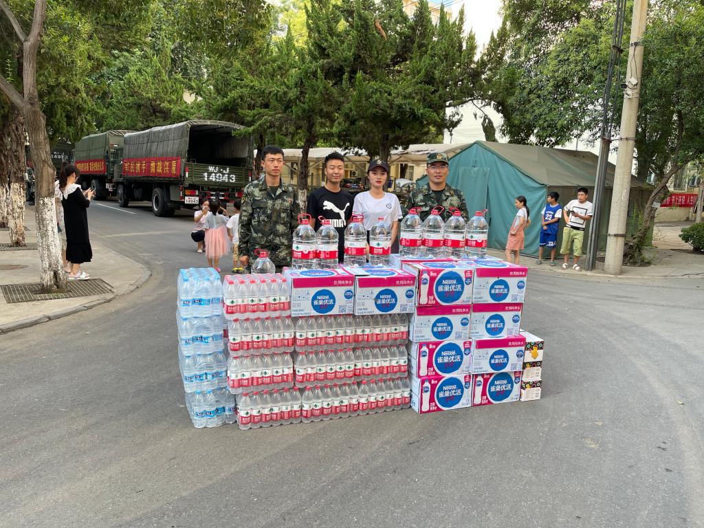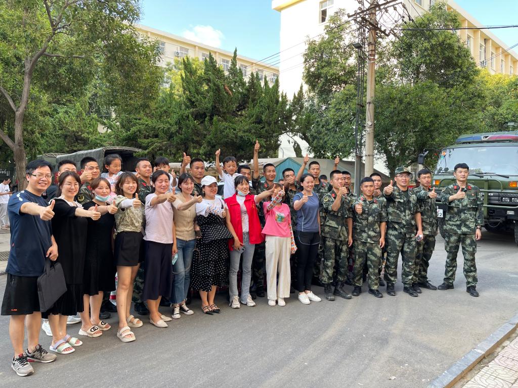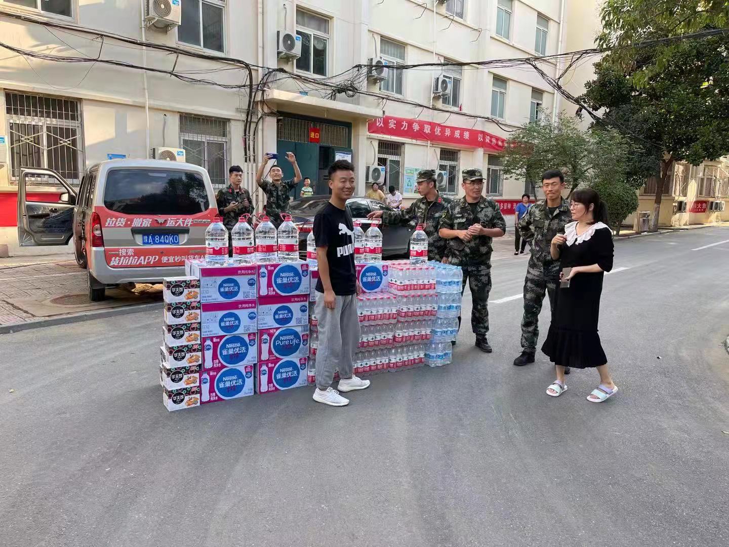 尽管部队后勤保障有力,生活物资充分,但学校周边企业和社区群众闻讯后,自发到校慰问抢险救灾官兵,把方便面、矿泉水等物资送到官兵手中,志愿者肖文珍、武凌子、雨馨等也携带爱心物资慰问抗洪官兵,以表达对武警官兵的感激之情。