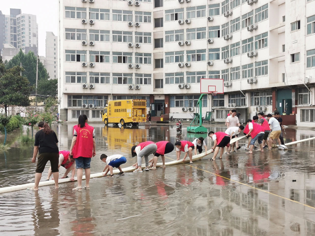 在排涝工作中,工会主席魏义军和总务后勤处处长宋金晓及后勤部门工作人员,发扬连续作战、连夜作战精神,全天候冲锋在第一线,长时间泡在水中工作,付出了辛勤汗水,做出了突出贡献。党政部门、各学生部门、教学部门的主要负责同志也都一直处于防汛排涝现场,在加强学生安全教育管理、协调教学培训活动、排查安全隐患等方面做了大量工作,校内积水问题得到极大改善。