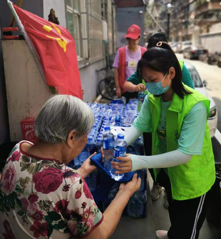 李慧颖自愿加入郑州市金水区志愿者队伍,为防疫路附近的小区居民发放饮用水,用自身实际行动为抗洪救灾做出自己的贡献。