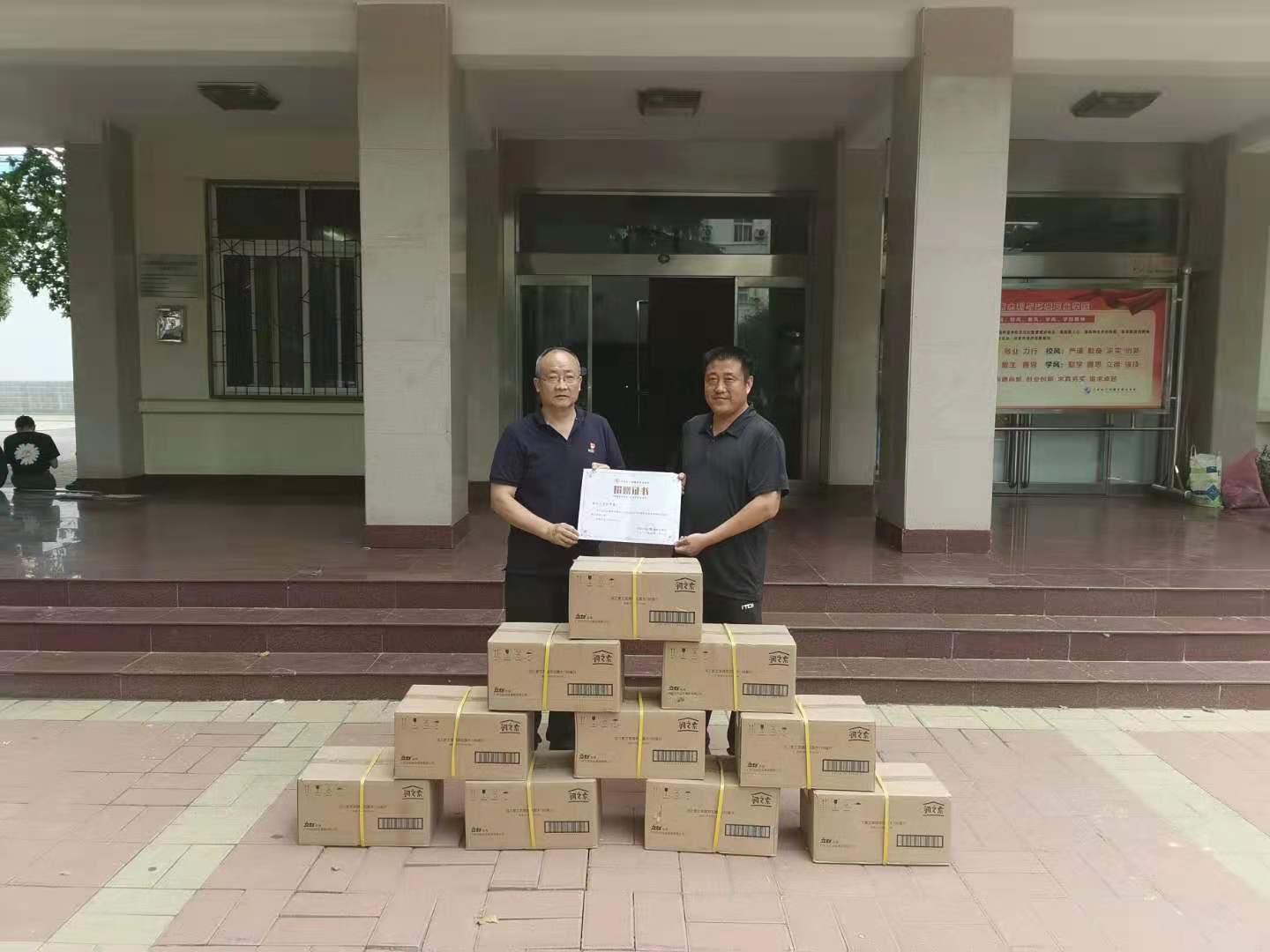 7月28日,驻马店市驿城区爱心人士刘军建通过物流发来一批花露水到达ylzzcom永利总站线路检测,并委托校党政办公室工作人员李豫峰进行捐赠。校党委书记王立正代表学校接受捐赠,并对刘军建表达了感谢之情。刘军建是驿城区开源办事处刁庄村村民,他在捐赠时谈到,在本次特大暴雨灾情中,学校领导和广大教师为了保证校园安全,奔波忙碌于防汛救灾的事迹让人感动,作为一名普通公民,非常希望通过捐赠参与助力学校防汛救灾工作,为学校师生增添安全保障。