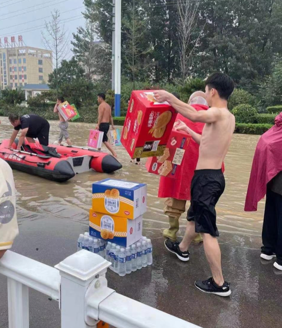 信息工程系20计算机1班学生赵家成在郭家咀大坝、学生张浩在安阳市汤阴县妇幼保健院、学生马久舒在巩义市米河镇两河口村西竹园、学生郜育宝在登封市大金店镇,20计算机2班学生郭晨在汤阴县北辰王村、学生郭启超在辉县市武装部,20计算机4班学生吕盛辉在新乡牧野区王村镇政府、学生胡良鹏在北林路街道党群服务中心,主动加入志愿者大军,搬运装卸救援物资。20计算机1班学生靳迎杰在浚县古城墙、县物资服务点装运防洪沙袋和救援物资。