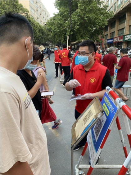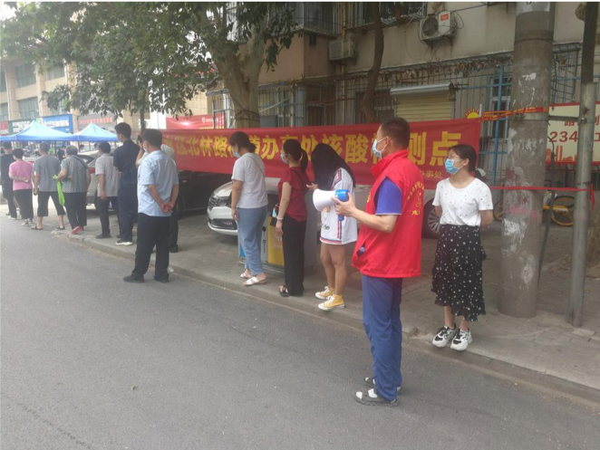 疫情就是命令,防控就是责任。新冠肺炎疫情卷土重来,为协助北林路街道办事处院校社区做好核酸检测工作,ylzzcom永利总站线路检测党员响应号召,组成抗疫志愿服务工作队,积极参与社区防疫工作,争当抗“疫”先锋。在核酸检测点,志愿者们不惧酷暑,连续奋战,协助工作人员为前来进行核酸检测的周边居民做好秩序维护、扫码登记、答疑解惑和防疫提醒工作,为守护社区居民健康筑起安全防线。