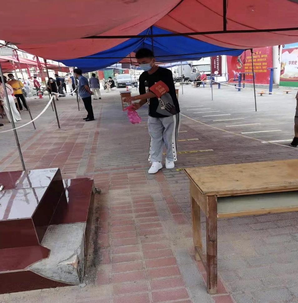 20级营销2班学生赵柯庆参与登记受检人员信息和卡点站岗等志愿服务活动。