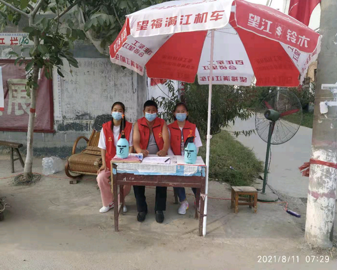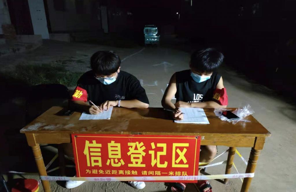 20级营销1班学生崔连熠、于坤、王品品、张之晟本参与村口执勤、信息登记、测温消毒等工作。