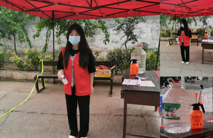8月21日-23日,王宝睿在辉县市峪河镇毛庄村担任疫情防控志愿者,在村庄疫情防控卡点值班,对外来人员进行信息登记、扫码测温,并参与村庄的日常消毒工作。她说:“面对严峻的疫情形势,作为一名当代大学生,我有义务担当起疫情防控的责任,与家乡人民勠力同心,抵御疫魔。”