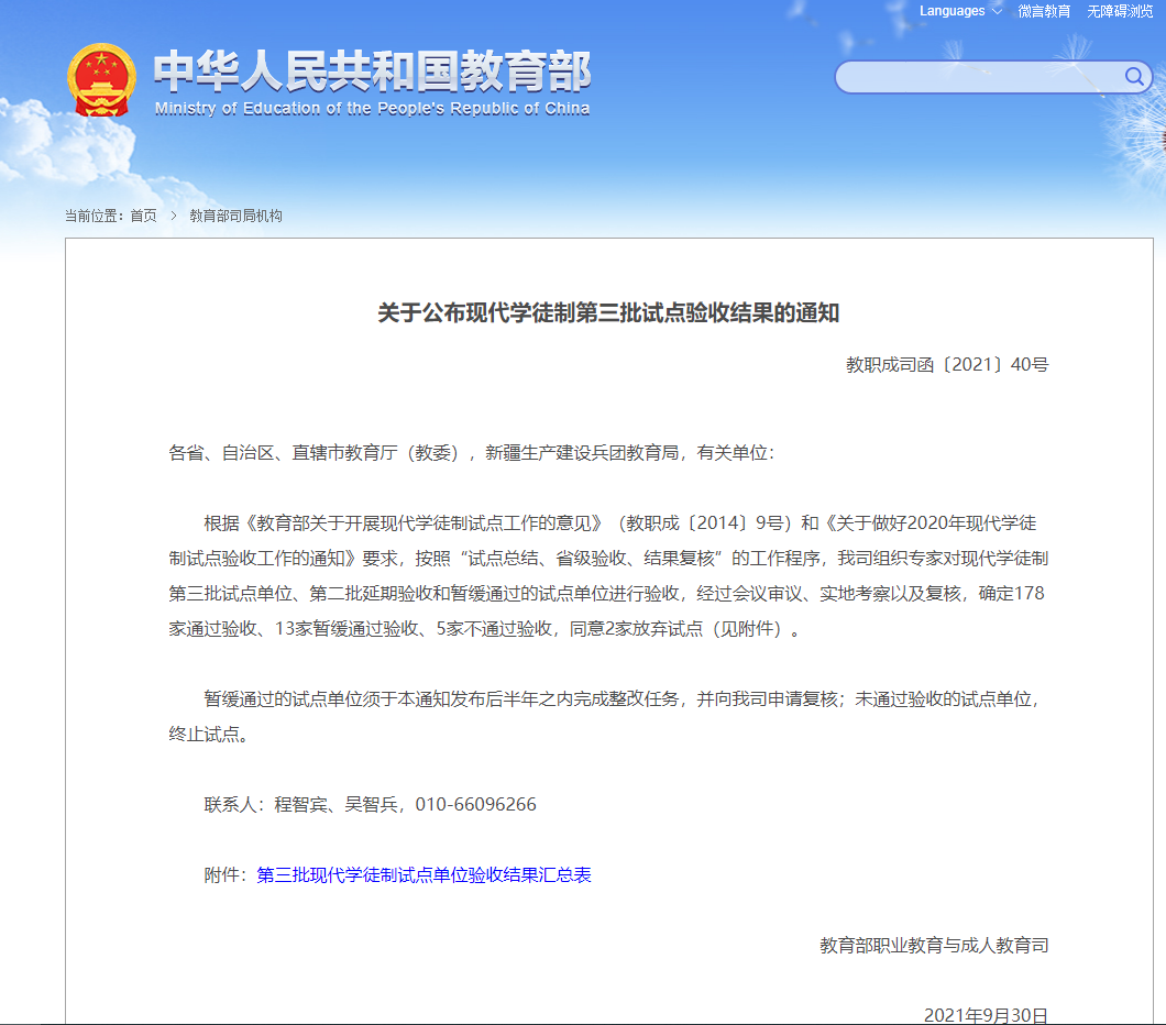 近日,根据教育部《关于公布现代学徒制第三批试点验收结果的通知》(教职成司函〔2021〕40号),ylzzcom永利总站线路检测5个试点项目全部顺利通过验收。