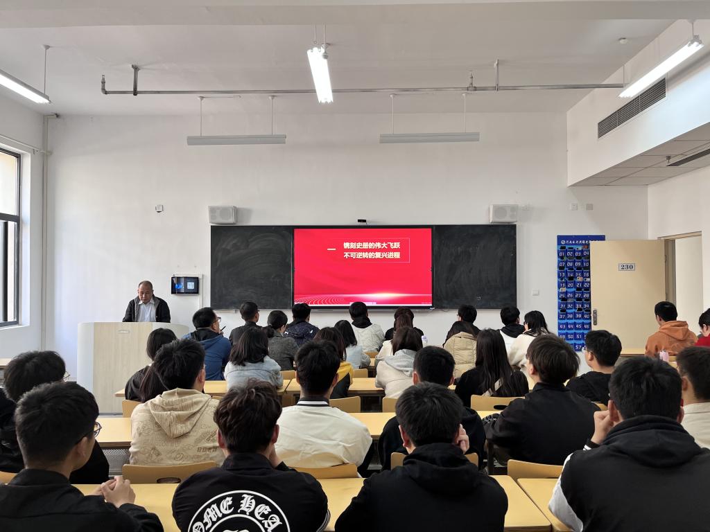 3月10日,工会主席魏义军在航空港校区为水利工程系师生讲授思政课,系主要负责人、全体辅导员及2020级监理-水利班学生参加。