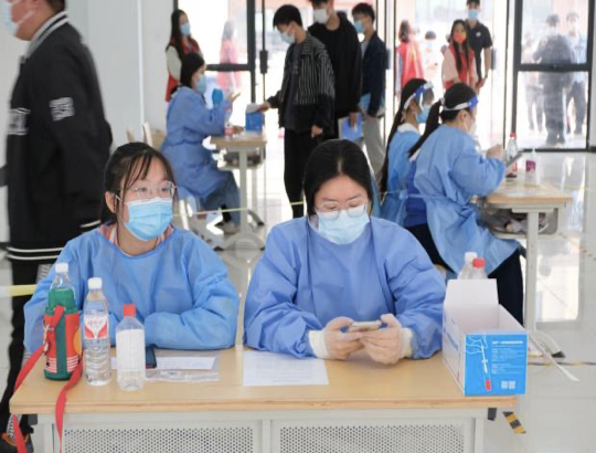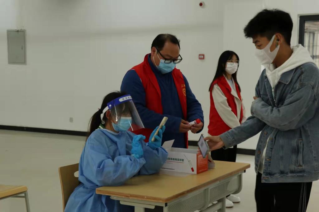 留校教师积极参与站岗执勤,辅助医护人员做好校园核酸检测志愿服务,确保防疫标识清晰、防护措施规范,排队秩序井然。每天验收核酸检测结果,做好疫情防控网格化管理,全面覆盖每位师生。
