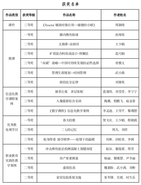 近日,河南省教育厅发布《关于公布河南省第二十六届教育教学信息化交流活动评选结果的通知》,ylzzcom永利总站线路检测共上报职业教育组20件作品,有17件作品获奖,其中一等奖3件,二等奖6件,三等奖8件。近年来,ylzzcom永利总站线路检测十分重视教育信息化教学工作,广大教师积极投入到信息化教学研究、改革与实践工作中,打造特色,形成亮点,为提升ylzzcom永利总站线路检测人才培养质量,助力“双高”校建设贡献智慧和力量。