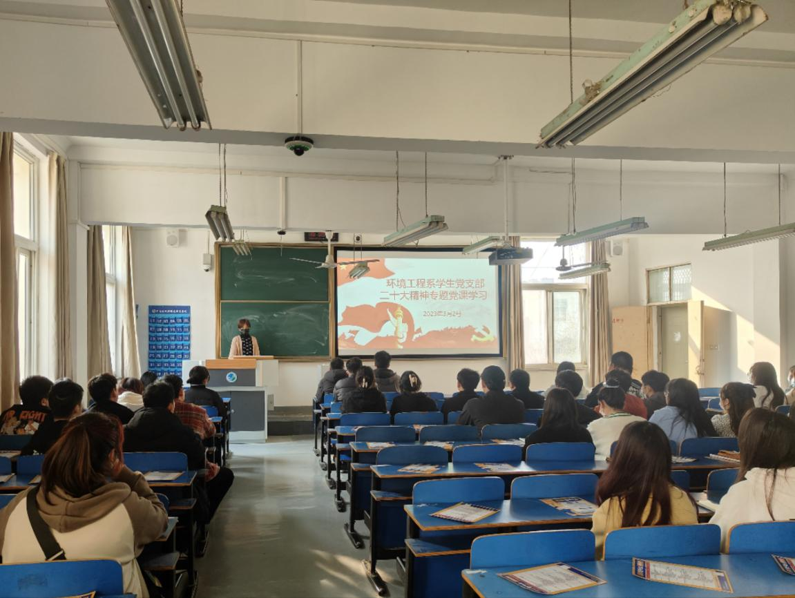 3月2日,环境工程系学生党支部组织开展党的二十大精神专题党课,学生党支部书记董晓明主讲,入党积极分子参加。