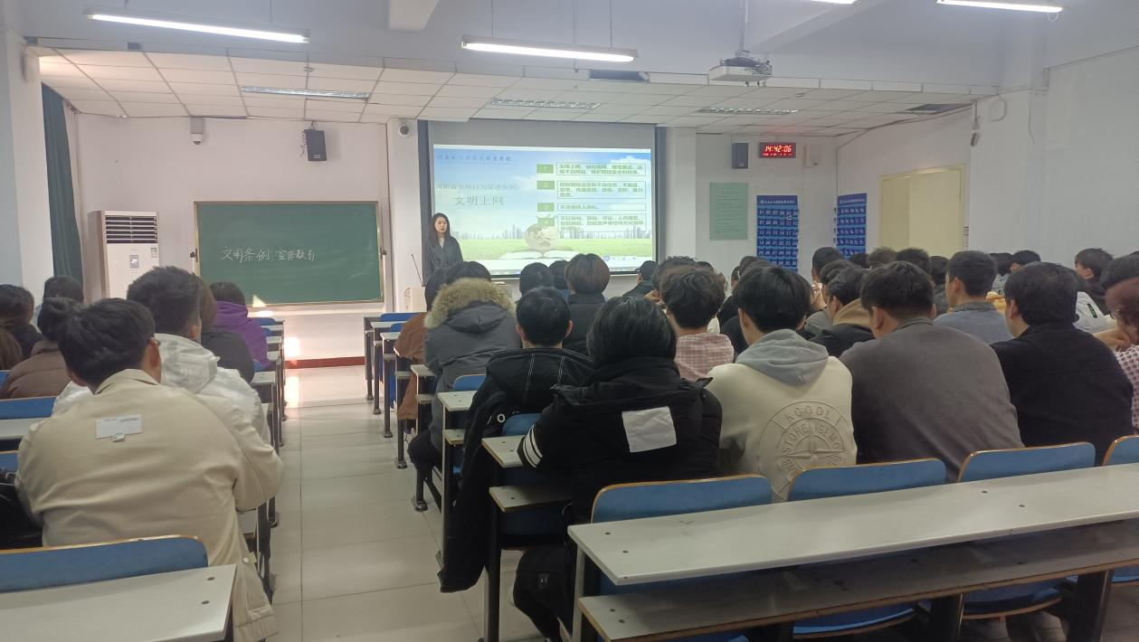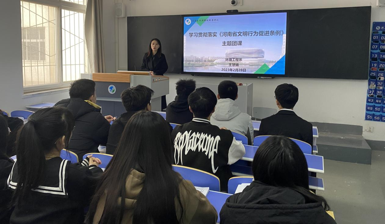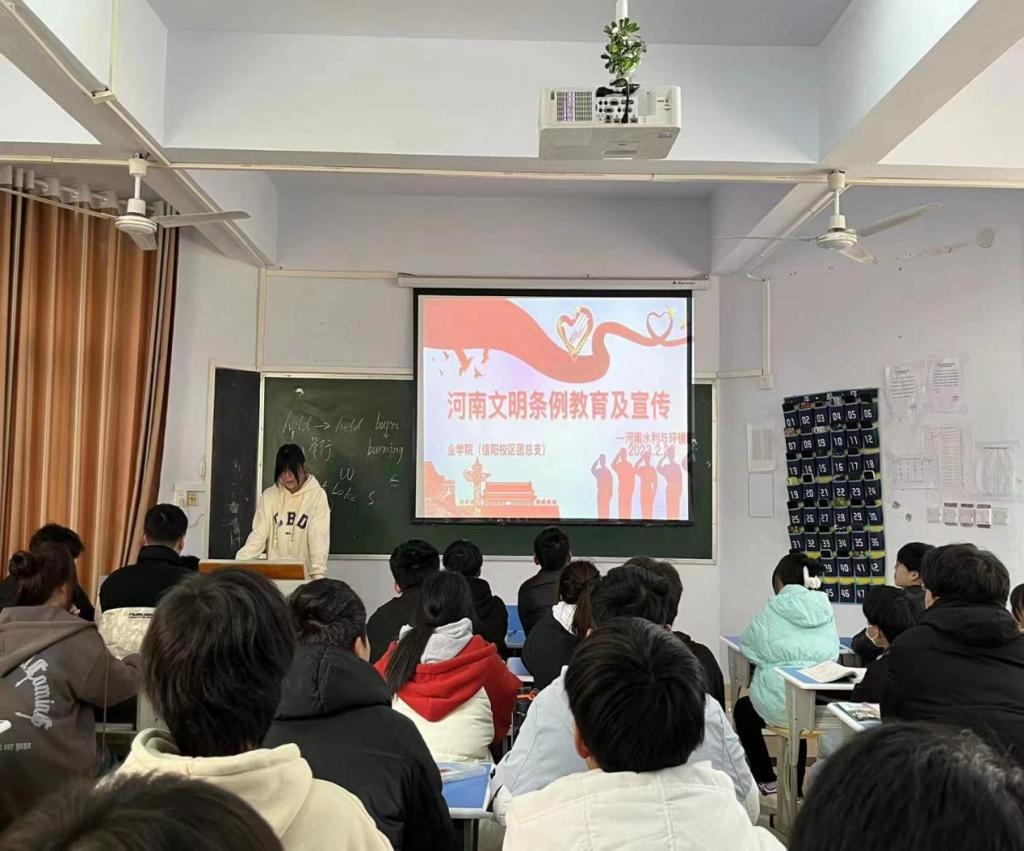 各系(校区)以团课形式,组织学生观看《河南省文明行为促进条例》专题视频,并通过摆放主题展板等形式,营造了学习《条例》的良好氛围。学生们纷纷表示,要自觉遵守《条例》规定,深入践行社会主义核心价值观,不断提升个人文明素养,争做文明行为的践行者、文明风尚的传播者,展现新时代大学生的文明风采。