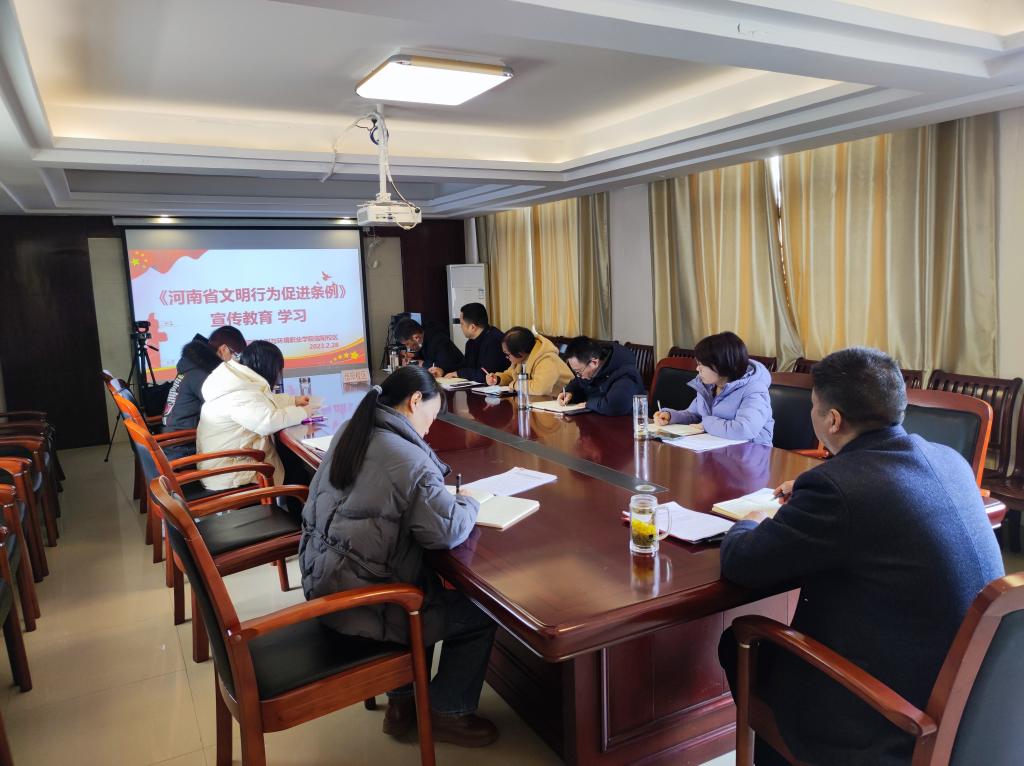 信阳校区教工党支部组织开展《河南省文明行为促进条例》专题学习,进一步引导干部职工树立文明观念,促进文明行为养成,发挥模范带头作用。
