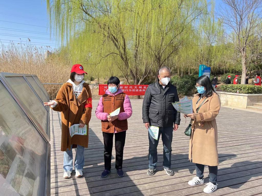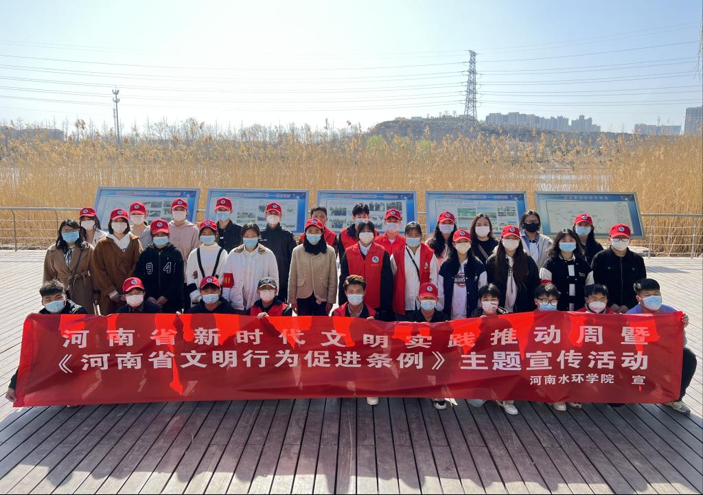 在ylzzcom永利总站线路检测水文化教育实践基地——郑州市贾鲁河,环境工程系学生党支部组织入党积极分子和学生干部开展文明实践活动,向过往市民讲解、发放《河南省文明行为促进条例》宣传页,并开展环保志愿服务活动。