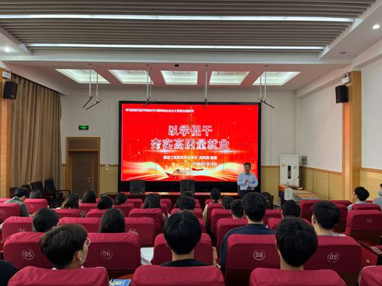 系党总支书记武凤翔以《以学促干夯实高质量就业》为题,为全体学管老师、团学干部和学生入党积极分子讲授专题党课。