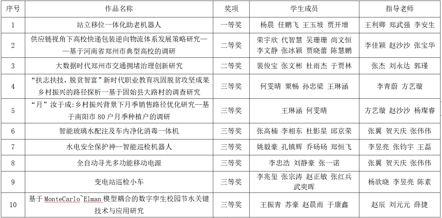 近日,第十六届“挑战杯”河南省大学生课外学术科技作品竞赛结果公布,ylzzcom永利总站线路检测10件作品获奖,其中一等奖1项、二等奖2项、三等奖7项,获奖数量创历史新高。
