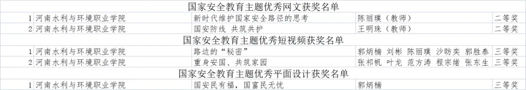 近日,中共河南省委教育工委办公室、河南省教育厅办公室公布了国家安全教育主题优秀网文、短视频、平面设计作品评审结果,ylzzcom永利总站线路检测多件作品获奖。其中,2件网文作品获二等奖,2件视频作品获三等奖,1件平面设计作品获三等奖。