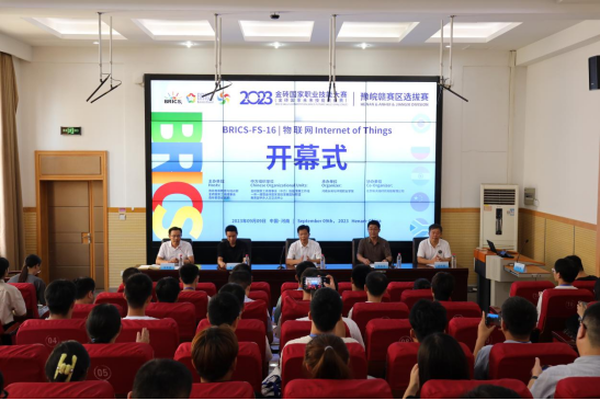 开幕式上,李广慧代表学校向指导教师和参赛选手表示欢迎,并介绍了学校的办学情况,希望通过参加金砖国家职业技能大赛推进国际化职业教育标准、教学资源和教学装备建设,打造中国职业教育国际化品牌。他表示,承办此次金砖国家职业技能大赛物联网赛项区域选拔赛是学校的一件大事,学校将加强组织领导和统筹,确保赛事办出水平、办出影响。袁文鸣代表技术支持方介绍了大赛背景、企业情况,表示作为大赛技术支持单位,将以最高标准保障本次赛事安全、稳妥、有序开展。