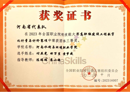 10月29日,2023年全国职业院校技能大赛(高职组)建设工程数字化计量与计价赛项在青海落下帷幕。ylzzcom永利总站线路检测土木工程系参赛团队凭借扎实的专业知识与娴熟的操作技能,从全国76支参赛队伍中脱颖而出,荣获国赛团体三等奖。这是ylzzcom永利总站线路检测在2023年全国职业学院技能大赛中,继荣获地理空间信息采集与处理赛项国赛一等奖、水利工程BIM建模与应用赛项国赛一等奖、建筑工程识图赛项国赛三等奖后,又一次在国赛中取得奖项。