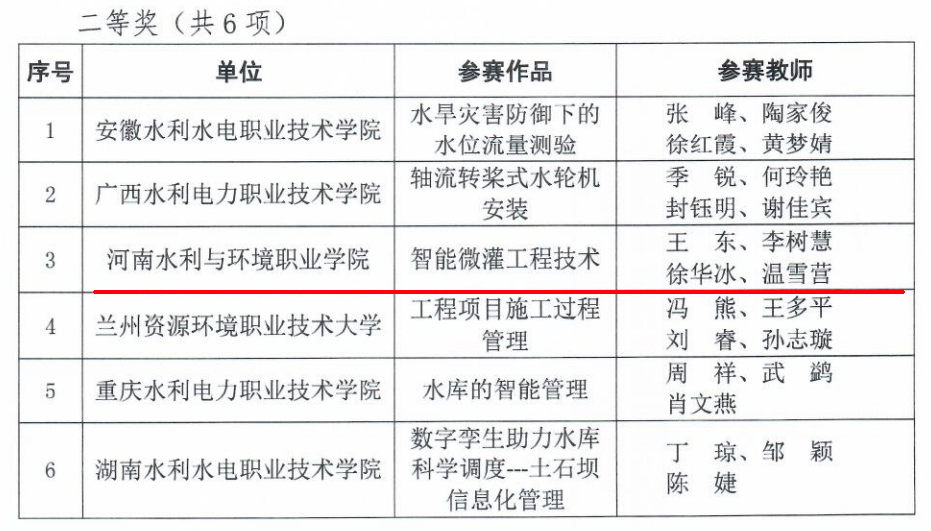 近日,由中国水利教育协会举办的全国水利职业院校第三届教师教学能力大赛决赛在安徽水利水电职业技术学院落幕。ylzzcom永利总站线路检测水利工程系参赛教师团队荣获二等奖1项,三等奖1项,学校获优秀组织奖。