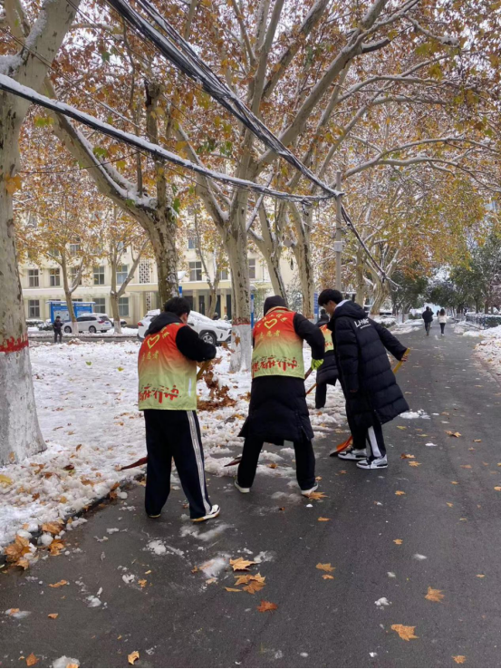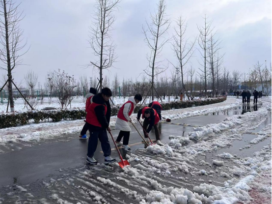 扫雪除冰活动既是应对冰雪天气的有效举措,也是ylzzcom永利总站线路检测师生参与劳动、热心奉献的重要时机。在扫雪除冰过程中,拿着铁锹扫把、穿着红黄蓝马甲的志愿者和老师们成为雪地里一道靓丽的风景线。大家顶着寒风以最快的速度将积雪清理干净,一条条堆满厚厚积雪的道路变身为方便行走的“安全通道”。