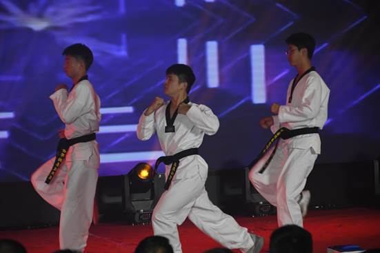 晚会以舞蹈《美丽中国》开幕,王金莹老师和同学们身着不同民族服饰,以曼妙的舞姿展现了中国文化的博大精深。一人独唱、两人伴舞的《故梦》让人沉醉其中,仿佛过去一年那些如诗如画的时光就在昨天。一首《稻香》让人仿佛回到快乐的童年。爵士舞和合舞节目充满了热情与活力,带动了全场氛围。跆拳社在《跆拳》歌伴奏下,演绎出了坚韧不拔的意志。《突然好想你》《烟花易冷》的深情献唱令人回味悠长。《武术少年》身法灵活,在台上显现出中华传统武技的魅力。舞蹈《招财招喜桃花开》使全场活跃起来。乐队的《一万次悲伤》,把复杂的情绪都融化在歌声里,散发出他们热爱音乐的万丈光芒。《携笔从戎》展现了军人应有的威武雄壮。由老师们领演的歌舞《路灯下的姑娘》点燃了同学们的激情,爆燃全场。结尾彩蛋通过大屏幕播放了毕业生、实习的学长学姐和在校同学们录制的新年祝福,给大家送去了温暖和良好祝愿。