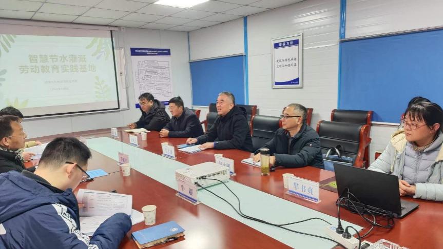 专家组考察了学校海绵校园、水利技术推广示范园,听取了有关学校智慧节水灌溉劳动教育实践基地的汇报。张志淮对专家组的到来表示诚挚欢迎,表示学校将认真听取各位专家的意见建议,不断改进和提高学校劳动教育育人水平。教务处长包永刚就劳动教育实践基地建设、劳动教育课程开展和劳动教育实践推广与专家组进行了深入交流。“双高办”负责人芈书贞详细介绍了学校智慧节水灌溉劳动教育实践基地基本情况和工作开展情况及成效。