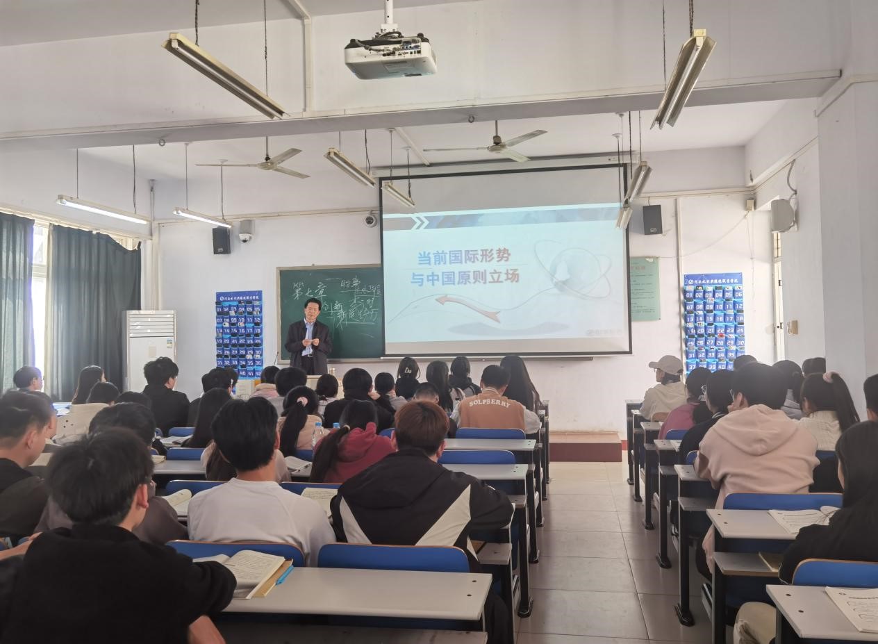 3月19日下午,校党委书记李广慧以“当前国际形势与中国原则立场”为主题,为信息工程系23级物联网专业1、2班讲授思政课。