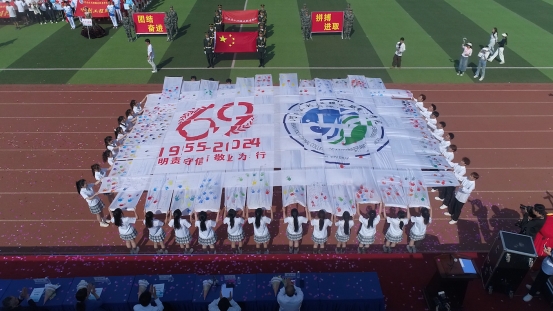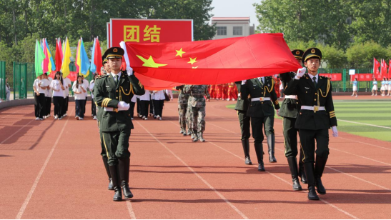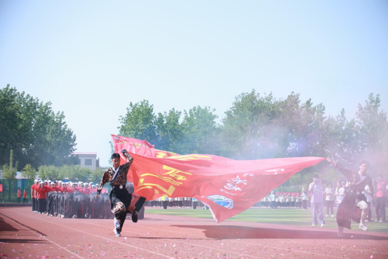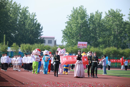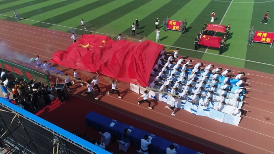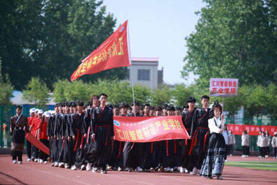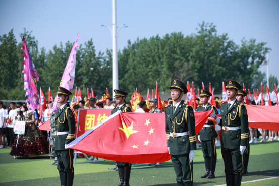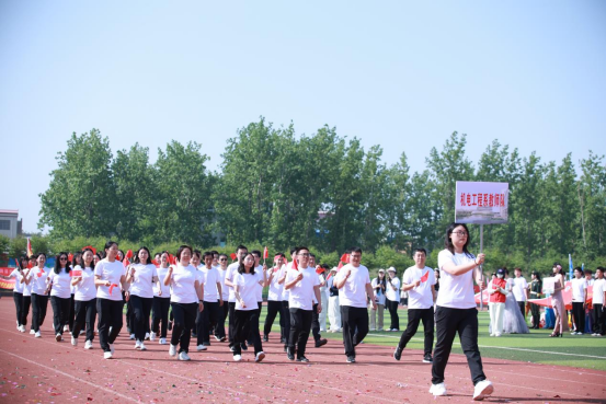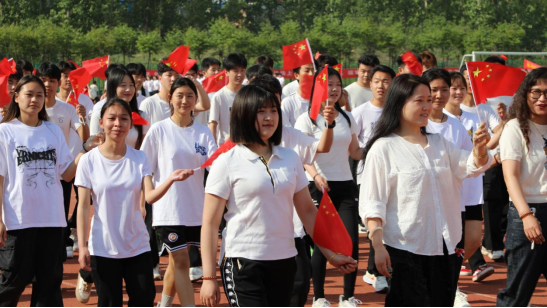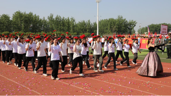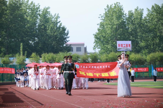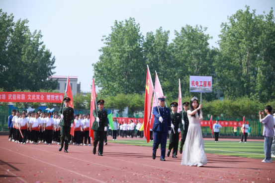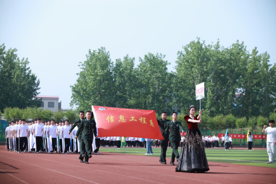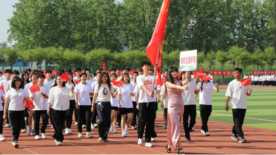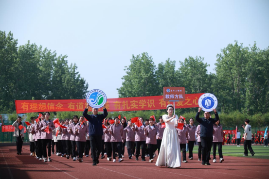 国旗队、校旗队、彩旗队、院系方队、教职工代表队