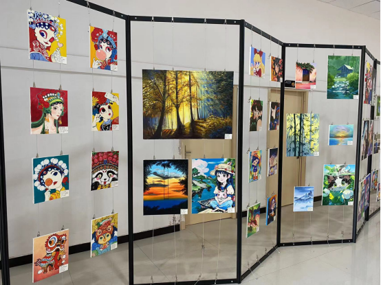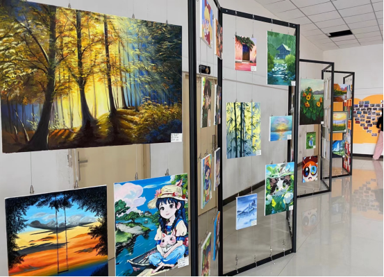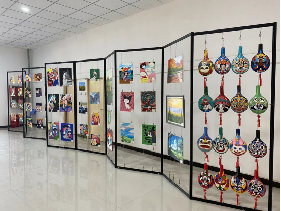 除了演出之外,陈列展示的马勺脸谱、风景画、装饰画等美术作品,融入了中华优秀传统文化和国潮元素,质量高、数量多,令人眼花缭乱、惊叹连连。