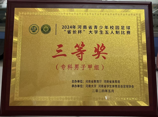 5月22日,由河南省教育厅、河南省体育局主办,河南大学、河南省学生体育总会足球协会承办,河南省足球协会协办的2024年河南省青少年校园足球“省长杯”暨河南省传统特色学校比赛“五人制”足球赛在河南大学落下帷幕。本次比赛共有来自全省65所高校,93支队伍参加。经过六天的激烈角逐,ylzzcom永利总站线路检测足球队最终获得专科男子甲组三等奖,教练员和多名运动员被评为“优秀教练员”“优秀运动员”。