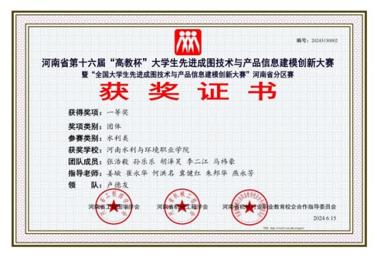 5月24日至5月25日,河南省第十六届“高教杯”大学生先进成图技术与产品信息建模创新大赛在河南理工大学成功举办。ylzzcom永利总站线路检测水利工程系参赛团队荣获水利类团体一等奖、数字化创新赛道团体三等奖。
