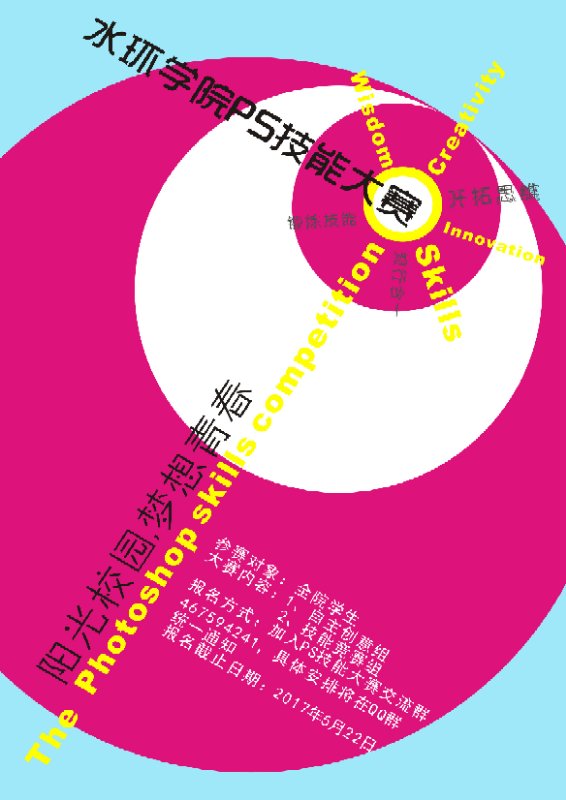 五、作品提交 1.自主创意组 要求作品分别保存为.psd格式和.jpg格式,文件命名为“2017”,所使用到的素材放在素材文件夹内,将素材文件夹和作品放在创建的“班级+姓名”文件夹后压缩文件夹,并以附件方式发送压缩文件到指定邮箱。 2.技能竞赛组 在规定的两个小时时间结束后按试题要求现场提交。 六、参赛对象 学院全体学生均可报名参赛。 七、参赛时间、地点 1.自主创意组 在2017年5月25日之前发送制作好的参赛作品到大赛指定邮箱psds2017@163.com。 2.技能竞赛组 2017年5月23-5月26日,具体时间、地点报名结束后统一通知。 八、报名方式 机电与信息工程系学生:以班为单位,将报名参赛学生名单交至南教四楼机电与信息工程系学生管理办公室方艺璇老师处; 其他系学生:参赛学生在报名日期截止日之前把班级、姓名、报名组别(自主创意组或技能竞赛组)、手机号发送到大赛指定邮箱psds2017@163.com。 参赛的学生请及时加入PS技能大赛交流群:467594241,具体竞赛安排将在QQ群统一通知。 报名截止日期:2017年5月22日。 九、奖项设置 自主创意组和技能竞赛组各设一等奖一名,二等奖两名,三等奖三名,颁发荣誉证书,并有精美奖品。获奖学生作品会通过学院网络进行宣传展示,表现优秀学生将获得推荐参加相关省级技能竞赛项目机会。