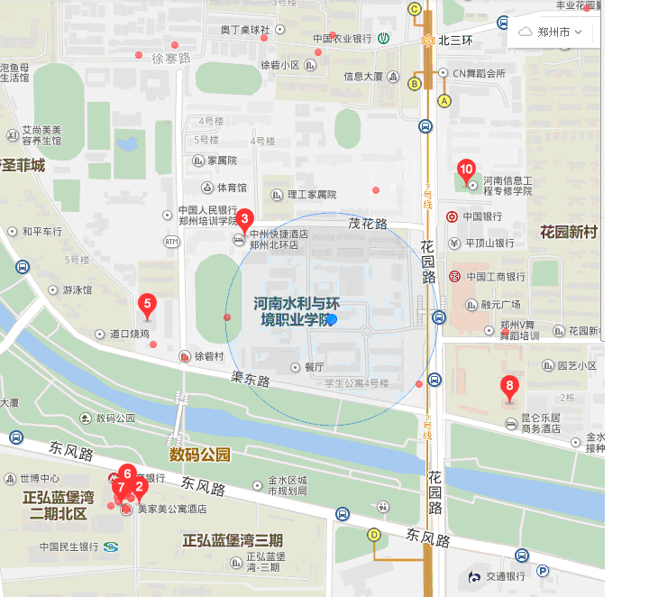 四、来校路线 公交:花园路鑫苑路站(9路,29路,32路,62路,63路,47路,77路,962路,S105路,Y809路),下车路西即是学校正门。 东风路花园路站(B2,B18,B32,2路,42路,97路,S102),下车向北500米。 汽车站火车站到校路线: 1、郑州汽车客运中心站,请选择32路9路29路公交车,出租车约15元左右。 2、郑州客运北站,可选择地铁2号线或9路,62路,32路,962路,63路公交车,出租车约10元左右。 地铁:2号线花园路北三环站B出口,向南500米。 火车站、郑州东站(高铁站),请选择地铁1号线转2号线。 自驾车: 郑州以北方向车辆,可走连霍高速柳林收费站下,沿花园路向南,过北三环约500米。 郑州以南方向车辆,可走机场高速、中州大道(或科学大道、西三环),经北三环,至花园路向南500米。 五、餐饮服务 考试当天,学校为每位考生备有午餐。上午考试结束后由监考老师统一发放就餐券,上午无文化基础笔试的考生可直接到招生就业指导中心领取,考生可持就餐券到学校南苑餐厅就餐,就餐时间:11:30-13:30。 交通、食宿自行安排,费用自理。因考生人数较多,服务不周之处,请您谅解。 六、考前注意事项 1.注意饮食卫生,注意劳逸结合; 2.提前查看考场,考试当天提前出行,以免交通拥堵,耽误应考; 3.提前准备好文具、准考证、身份证等考试用具,避免漏带; 4.郑州周末酒店一般住房紧张,入住前尽量提前电话预订。 七、学校周边宾馆 1.中州快捷酒店郑州北环店 地址:花园路茂花路向西200米。学院北侧,步行5分钟可至校园。 前台电话:0371-67705555。 2.全季酒店、汉庭酒店(郑州北环花园路店) 地址:郑州市金水区郑花路20号(省电视台北邻)。距学校正门步行约15分钟 电话:0371-55528333、0371-53310633 3.汉庭酒店(农科路店) 地址:花园路与农科路交叉口北30米路东。距学校正门步行约15分钟 电话:0371-66896655 4.左岸旅舍精品酒店 地址:渠东路与花园路交叉口向西150米路北。距学校正门步行约15分钟 电话:0371-86253360 5.昆仑乐居商务酒店 地址:花园路鑫苑路交叉口向东150米路北,距学校正门步行约10分钟。 电话:0371-60889999 6.郑州乐驿旅馆 地址:花园路畜牧路向东150米路北,距学校正门步行约5分钟。 电话:0371-65355099 7.世纪通宾馆 地址:花园路鑫苑路向东500米路北,距学校正门步行约15分钟。 电话:0371-65657833 学校周边还有一些旅馆,同学们可以自行上百度等网站查询,打电话预订。 学校联系的相关宾馆如下图所示: